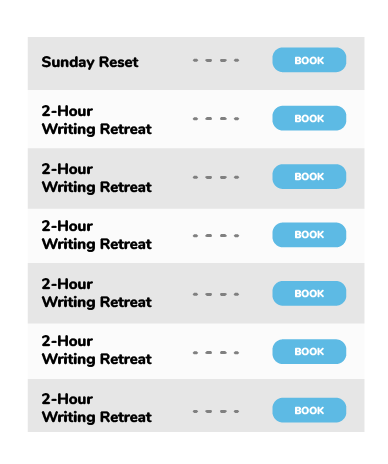 Choose from 100+ live coworking sessions each month. Every session gives you the focus, care, and support to stop spinning your wheels and start making real progress.
